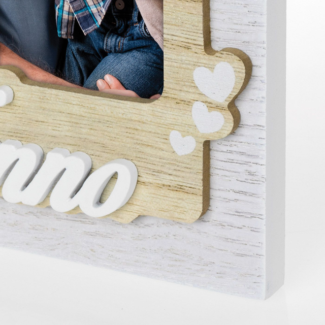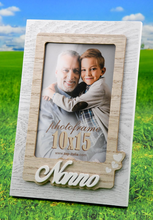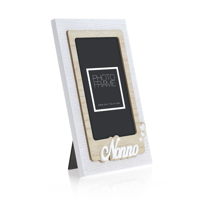 Cornice Nevio IT in legno, colore bianco e marrone, decoro traforato a rilievo, con scritta NONNO, da tavolo, adatta come regalo alla festa dei nonni, ideale per celebrare anniversari o compleanni, adatta per casa e ufficio.