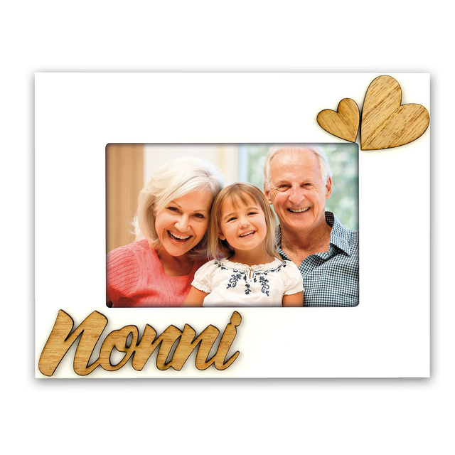 Cornice Nonni in legno, colore bianco, con scritta NONNI a rilievo e decoro a forma di cuore in 3D, da tavolo, adatta come regalo alla festa dei nonni, ideale per celebrare anniversari o compleanni, adatta per casa e ufficio.