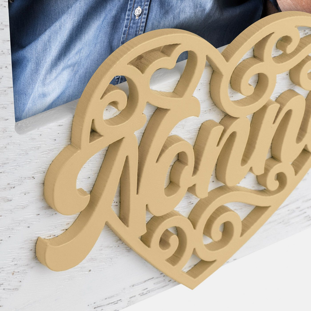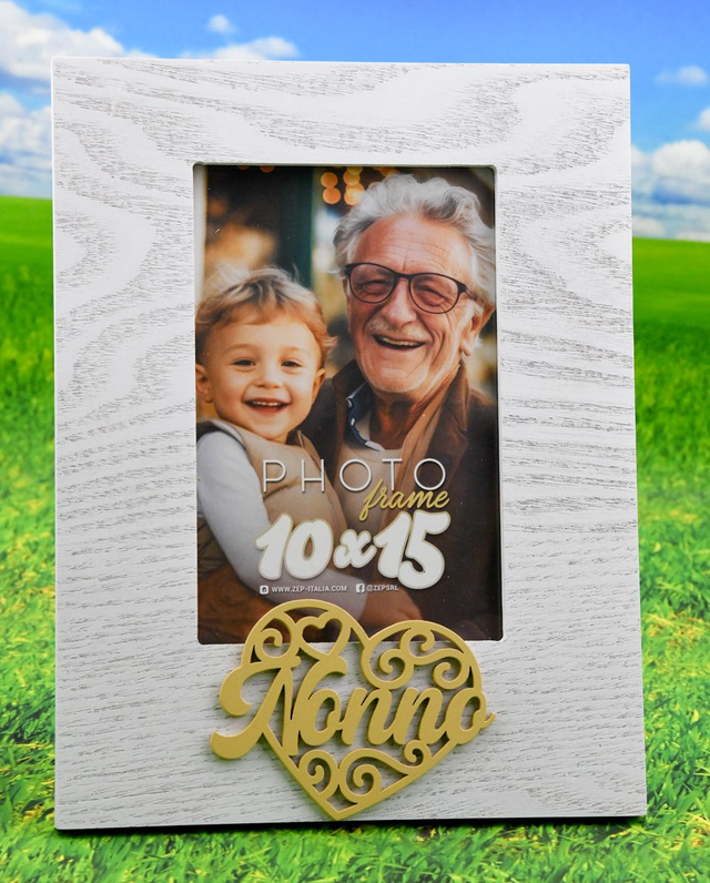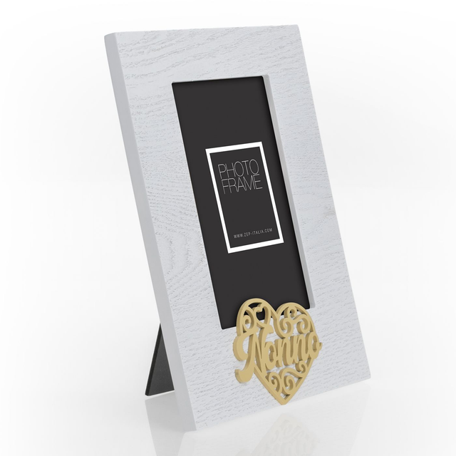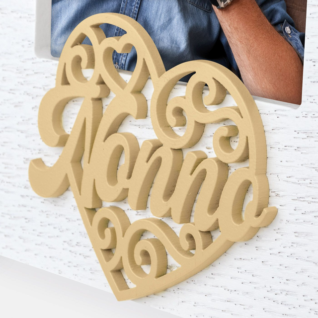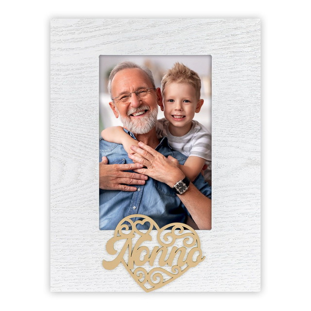 Cornice Gianni It in legno, colore bianco, con scritta NONNO a rilievo e decoro a forma di cuore traforato, da tavolo, adatta alla festa dei nonni, ideale per celebrare anniversari o compleanni, adatta per casa e ufficio, idea regalo originale.