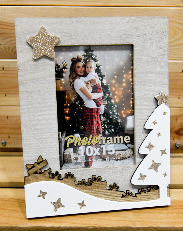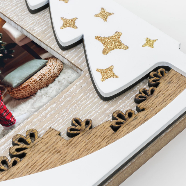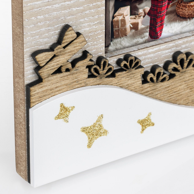 Cornice Sestriere in legno, colore naturale, con decoro traforato e a rilievo, a tema invernale, da tavolo, idea regalo originale, decorazione natalizia, regalo personalizzato.