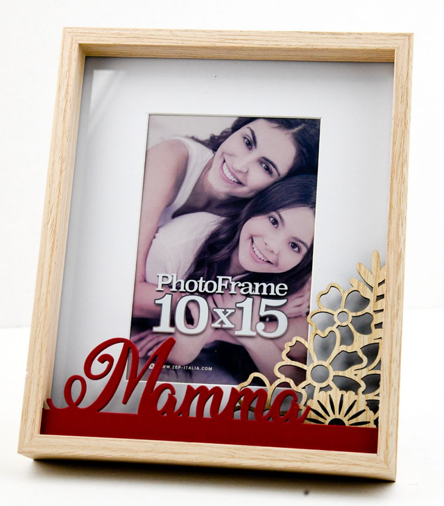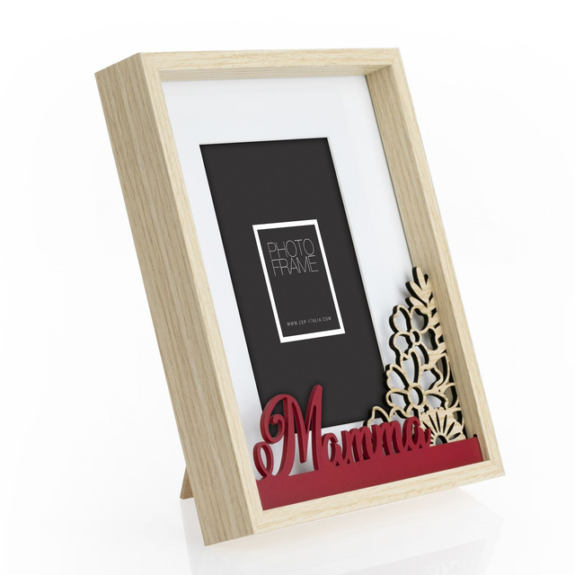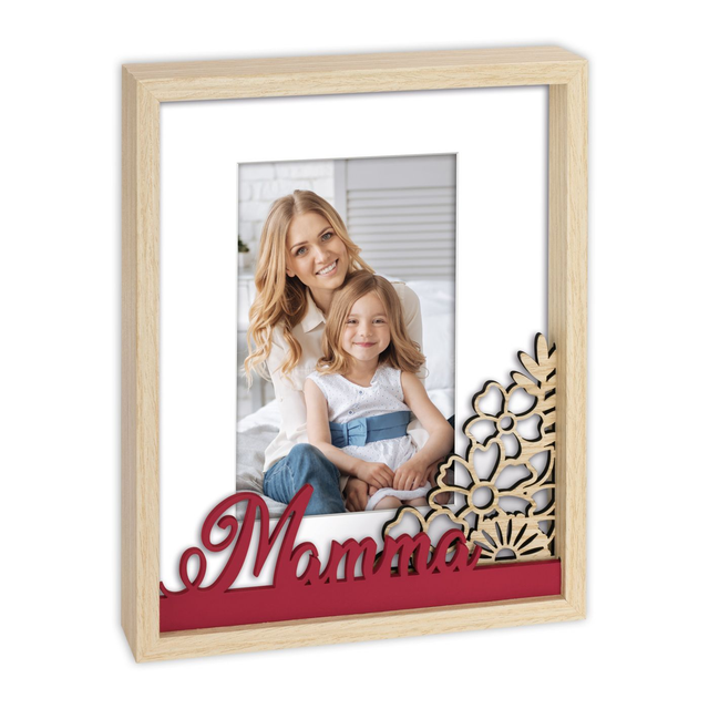 Cornice Chloe IT in legno, colore naturale e bianco, con scritta MAMMA