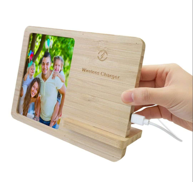 Basta appoggiare il telefono per avviare la ricarica rapida. Il design in legno naturale rende questa cornice perfetta per casa, ufficio o camera da letto.