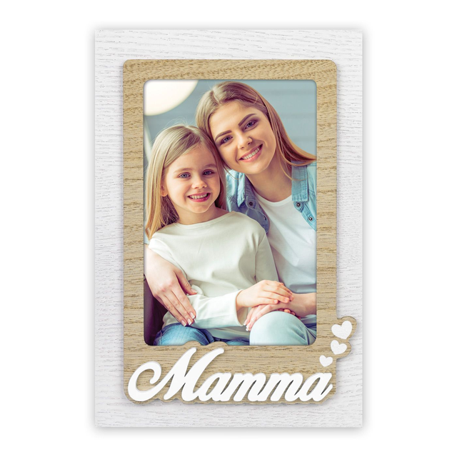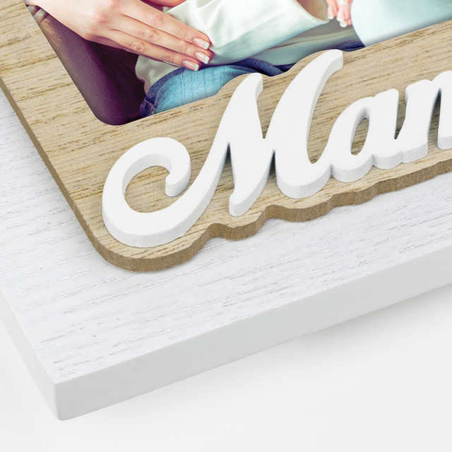 Cornice Sandra IT in legno, colore bianco e marrone, decoro traforato a rilievo, con scritta MAMMA, da tavolo, adatta come regalo per la festa della mamma, ideale per celebrare anniversari o compleanni, adatta per casa e ufficio.