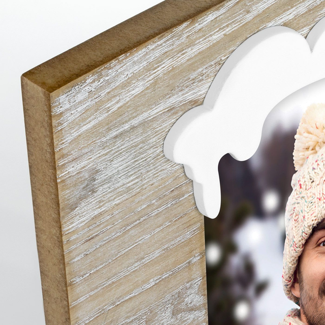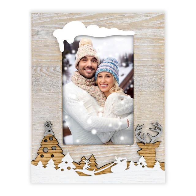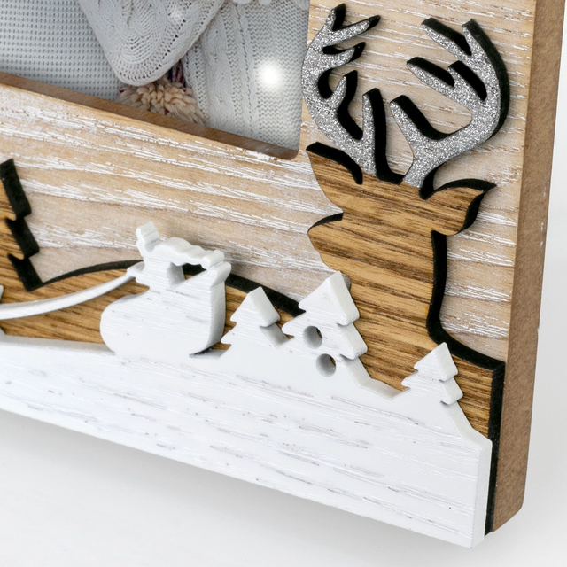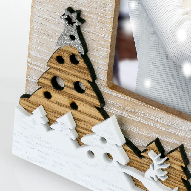 Cornice Sven in legno, colore naturale, con decoro traforato e a rilievo, a tema natalizio, da tavolo, idea regalo originale, decorazione natalizia, regalo personalizzato.