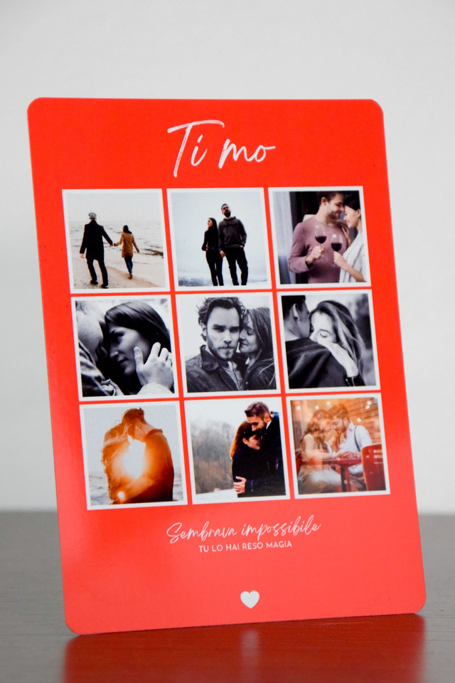 Panello LOVE collage in alluminio formato 13x18 puoi personalizzarlo con 9 foto più dedica